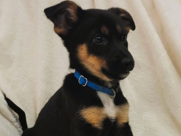 Penny, a precious 12-week-old mixed breed puppy, is full of enthusiasm, extremely curious, happy, and sometimes nosy. Her beautiful tri-color coat is shiny and beautifully marked. She does play with her one remaining sibling but can be easily diverted if any person comes her way to play with her. She enjoys the attention while she finds something new to look for and check out.