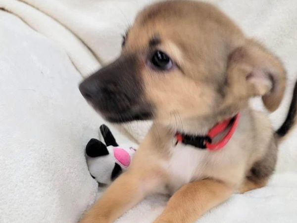 This beautiful 4-month-old female pup lives up to her name—she’s royalty in every way! Though her breed is a mystery (some say she might be part Chihuahua), one thing’s for sure: Princess is full of love, energy, and personality. She adores playtime and thrives on being around people. Whether she’s chasing toys or cuddling up for snuggles, this little lady is ready to steal your heart.